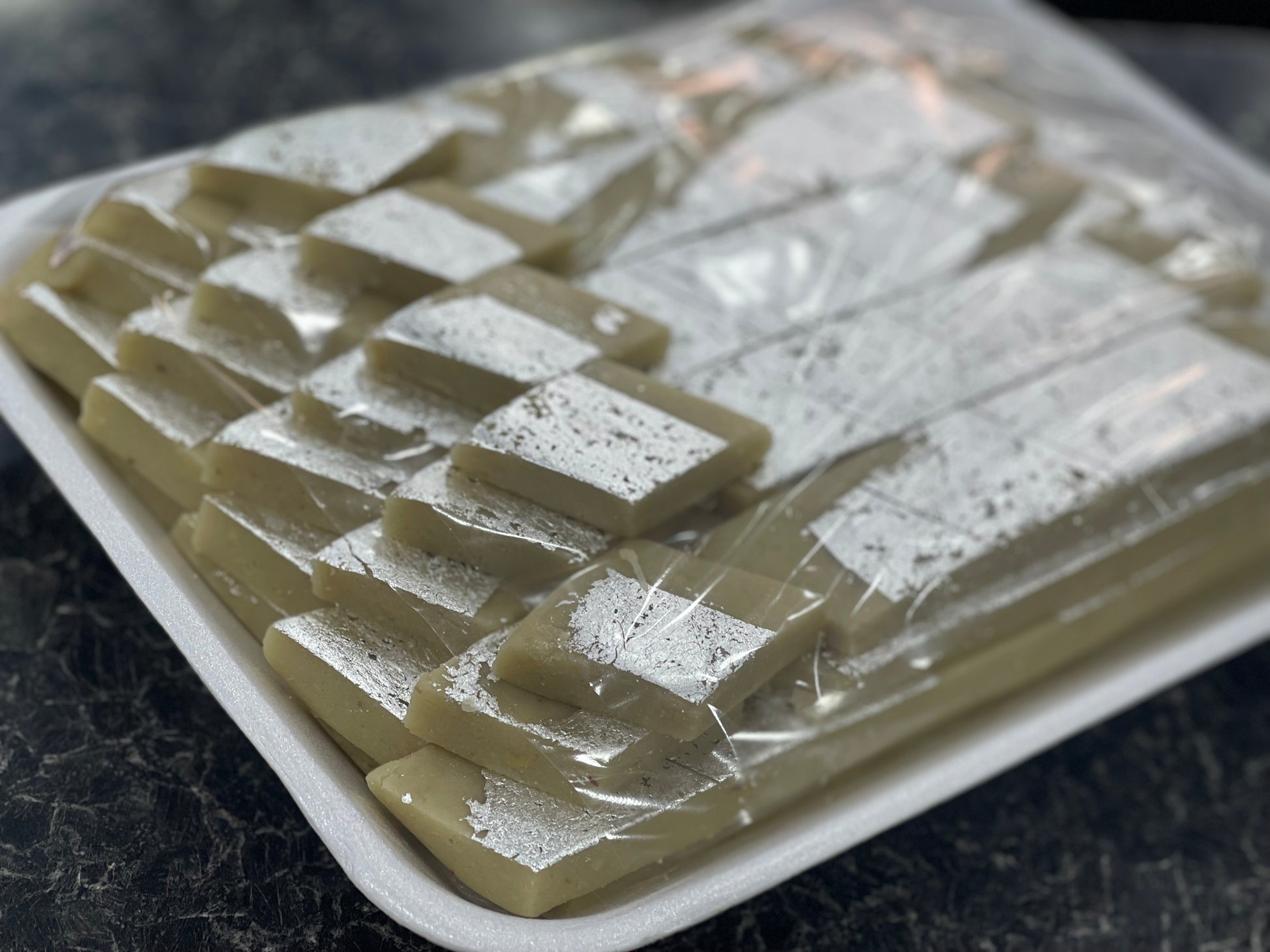 CASHEWNUTS, Sugar, Glucose Syrup, Silver Leaves